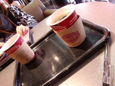 打ち合わせの時間に行くと既にコーヒーの購入済み。ありがたく頂戴してソファの席へ。写真を撮った後に雑談と打ち合わせの前座。この後もうお一人が加わって3名でミーティング。しかもコーヒーもう1杯までごちそうになり、一番年下の自分が何も出来ずにおろおろするばかりの恥ずかしい展開に。終わってからトレイを返却口に持っていくことぐらいしか出来ませんでした。(汗)