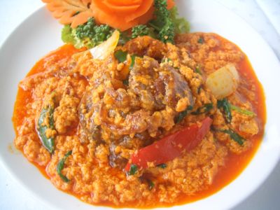 定番の渡りカニのソフトシェルクラブバージョン。ソフトシェルクラブは脱皮したばかりのカニで丸ごと食べられるカニです。これなら殻をほじりながら無口になることもありません。白いご飯やカニチャーハンと一緒に頼む人も多いです。