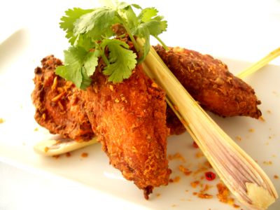 レモングラスと一緒に調味料に漬けて、衣をつけて揚げます。香りがいいですよ。ビールのおつまみにもとっても合います。