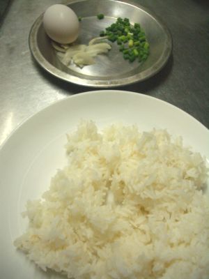 ライスが温かいほうが良いとする伝説とライスを冷やしたのを使うのと大きく分けて2つあります。どっちもよいでしょうが、冷えたライス(冷蔵庫の保管しているもの)で作るときは少しお水かスープを最後にいれるとふっくらとできます。