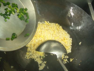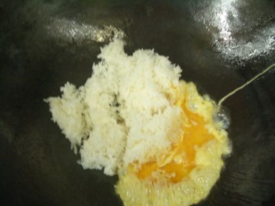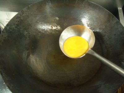 写真は溶き卵ですが、溶かないで使う人は小さいボールに割って入れて、かき混ぜずにおいときます。炒め油を少し熱し溶き卵をいれて・・・