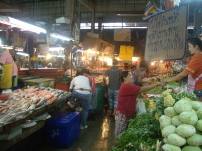 生鮮野菜、鮮魚、肉(カエルなども含む)、日用品、調味料全般にいたるまでありとあらゆる物が売られています。バンコクにもあちこちにあったこのような市場はだんだん少なくなってきて、大型ショッピングモールやスーパーなどで買い物も多くなってきています。でも10年以上も前に来た頃とあまり変わらない賑わい、品ぞろいに嬉しかったです。