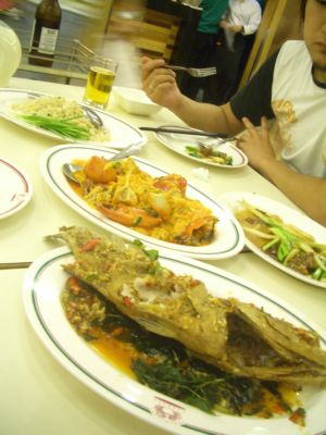 希望もあって魚の姿揚げ、カイラン菜とコリコリ豚炒め、定番の蟹のカレー炒め、チャーハン。もろ定番ぞろいでしたが楽しみました。