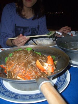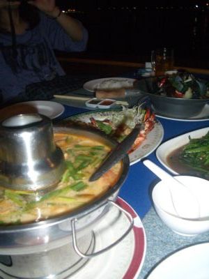 夜、象トレッキングかれ帰ってきてから海辺のシーフードレストランで食事。