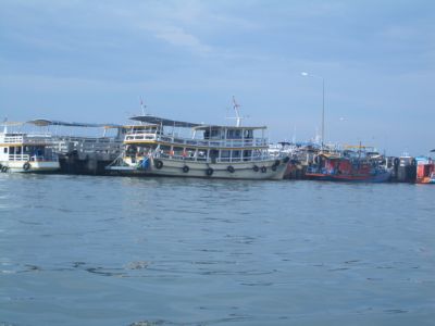 繁華街の先にある受付で往復のチケットを買い、桟橋の先に停泊している船に乗り込みます。