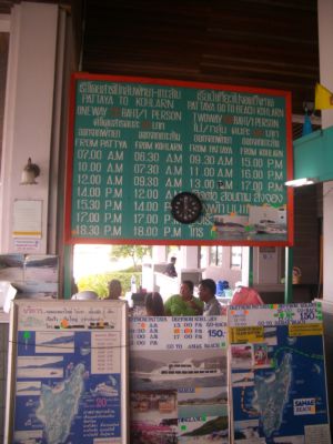 どこのビーチにまで行くかを伝えます。簡単な説明の書いてある案内板に指で示せばいいです。往復150バーツ~。