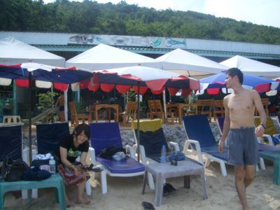 ビーチにはパラソルやいすなども用意されています。1日使用料(50バーツ)を払うとビーチ側のが使えます。奥にもあってそれは定期船利用者であれば無料です。海は透き通っているのでゴーグルやシュノーケリングセットがあればいいでしょう。ただ、プーケットなどのさんご礁とは比べ物にならないのであまり見るものはないです。