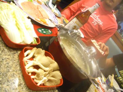 夕飯はタイスキチェーンのMKでタイスキ(タイ式鍋)。好きな具を頼んで、鍋に全部放り込んでごった煮にしてから特製チリソースで食べます。