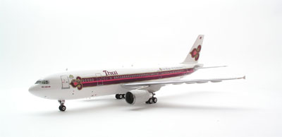 これは同じくタイ国際航空 A300-600 旧塗装バージョン。ヘルパ社(ドイツ)の精密なモデル。ほんとキレイ。実物は東京にいた頃に見たことがありますが(お店でよだれを流しながら見とれてました。)、世界一の仕上がりです。さすがドイツ製。