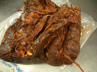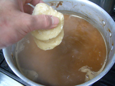 手でほぐして水分を全部に行き渡らせほぐしていきます。、