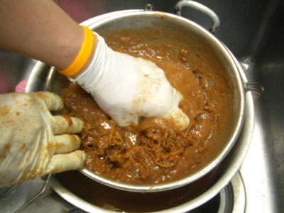 バンダルのやり方はホテルやレストランで作る一般的なやり方ですので、かならずしもこのやり方やソースの作り方ではないといけないわけではないので、予めご了承ください。設備や手間の問題もある為、屋台での作り方と若干違うところもあります。