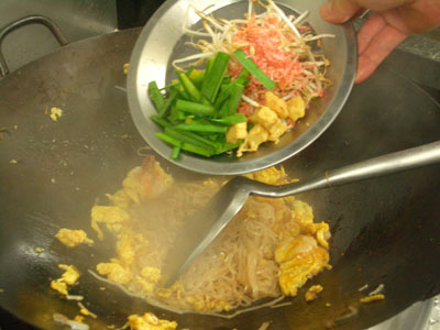 タイで使用する豆腐は硬い豆腐で、生のまま切って炒めます。日本では厚揚げか豆腐を揚げてから使うのが一般的です。