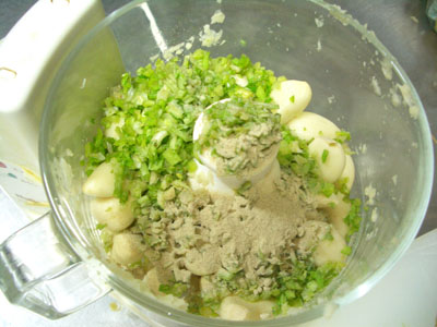 石の臼で潰してすり合わせても良いんですが、時間がないのでフードプロセッサーに。ニンニク、コショウも一緒に。コショウは粒からの方が香りがいいです。