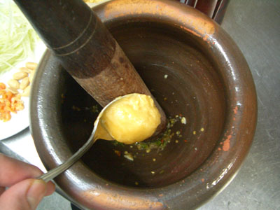 前にも書きましたが、東北タイ式になると砂糖はほとんど入れません。またライムの他にタマリンド汁も使います。