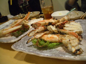 蒸したズワイと焼いたタラバ