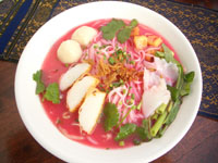 今までの汁ビーフン。トッピングが増えて少し豪華に。