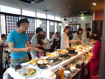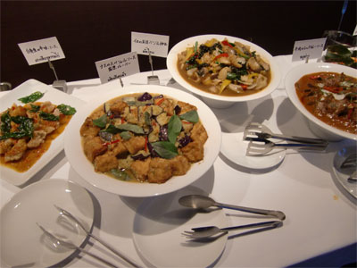 料理名の名札の日本語とタイ語が合っていないトラブルもありましたが直ぐに解決。料理が目の前にずらっと並ぶと自然に笑顔が出てきますね。