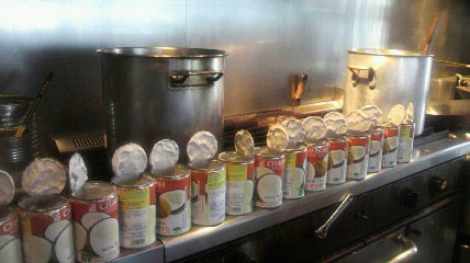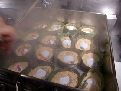 バナナの葉で作ったカップでカレームースをつくりました。タイ人もいらっしゃるとのことでちょっと意識してメニューに組み込みました。