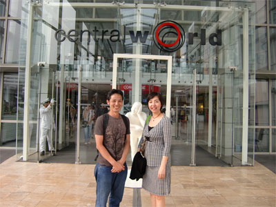 週末前にセントラルワールドに行こうとしたら偶然お会いしたのが、タイ国政府貿易センター福岡事務所の方。展示会でバンコクにいる期間と帰る便が一緒とは知っていましたが、ばったり街中で会うと「狭いですねー」になります。あまりにも偶然だったので意味のない記念写真を。