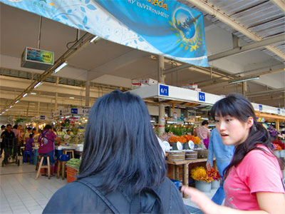 床はタイル張りで清潔。また普通の市場と違いごみごみしていません。珍しい南国のフルーツや野菜などを見ながら市場内を散策。