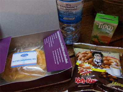 冷房が程よく効いた車内。季節は夏になるタイでも朝方は少し涼しいので車内の温度も少し下がってきました。毛布に包まり一眠りから覚めた頃には外も明るくなりました。やがて車内の電気と演歌が流れ始め、車掌さんがあまーい熱いコーヒーをリクエストした乗客に持ってきてくれました。同時に紙おしぼりも配布。