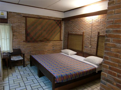 部屋に入ってもう一度びっくり。きれいで広い部屋にダブルベッド(チェンマイでも)。