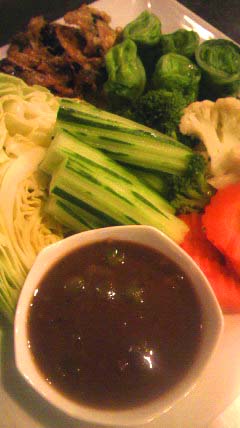 今日のソースはオキアミの塩辛にニンニク、唐辛子、干し海老、ナムプラー、ライム汁、パームシュガーを入れたもので定番中の定番です。野菜は温野菜、生野菜、揚げ野菜といろいろ。野菜にも定番がありますが、予算や日本では手に入りにくいものもあったので間近で揃えられるものを並べました。