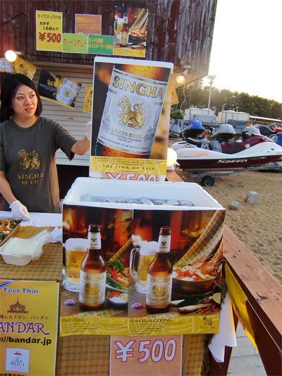 今回はタイビール、シンハービールも販売。タイ料理にタイビール、しかも浜辺。これしかないでしょ。