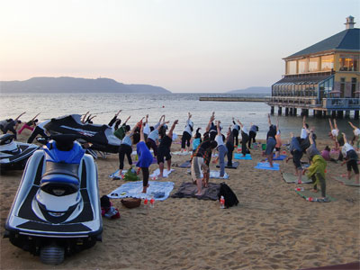 イベント開始からまずビーチでヨガ。福岡でもヨガは結構はやっているみたいでして各種イベントもあるんでしょうね。