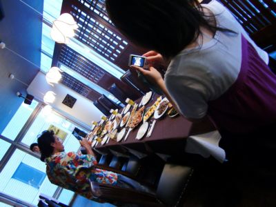 テーブルに料理を並べてまずは記念写真。
